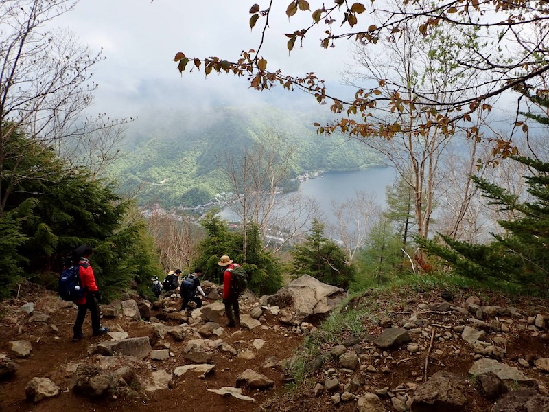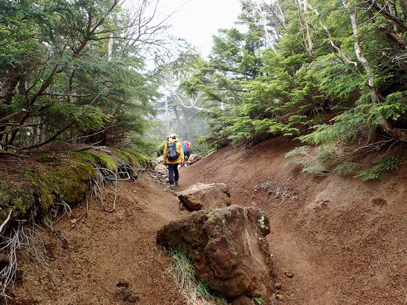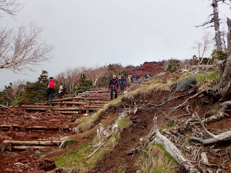 三合目から四合目は車道を歩き、四合目からは傾斜が一旦緩むものの、そこから岩がゴロゴロした急斜面を登ります。