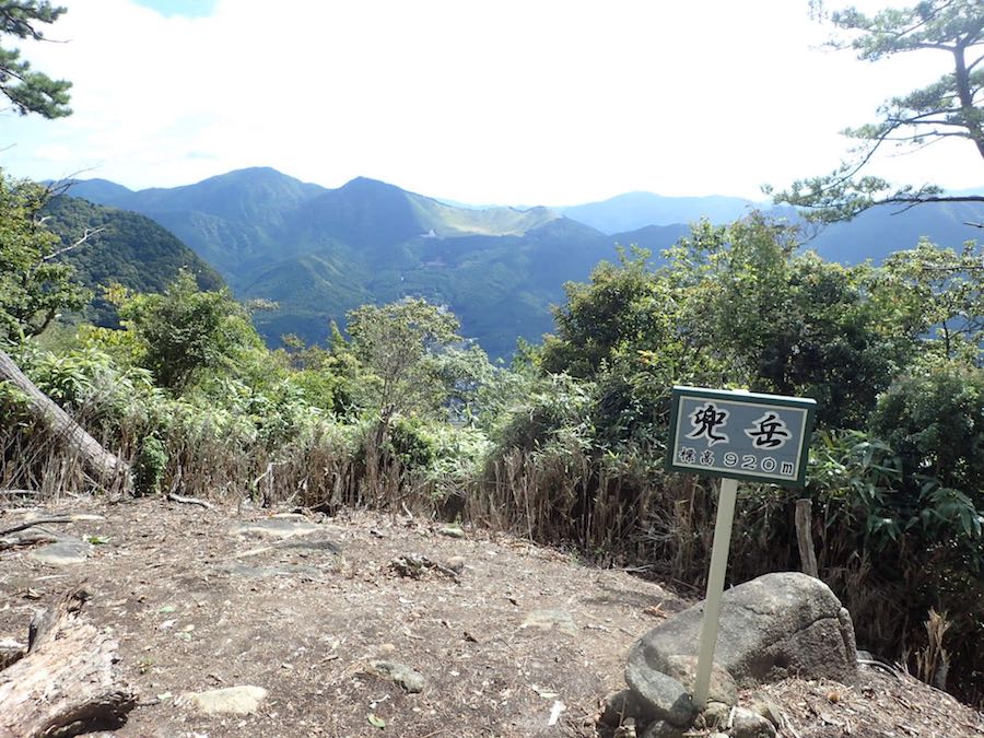 やがて緩やかになって割とあっけなく兜岳の頂上に立った。東面が切り払われていて曽爾高原と倶留尊(くるそ)山が見えました。