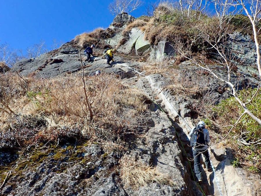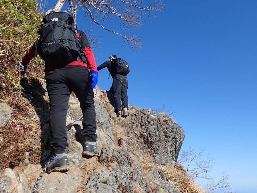 それを過ぎると鎖場が出てきました。岩にステップが切られているので危なくはありませんが、高度感は結構でます。雨で濡れているとしんどいでしょうね。