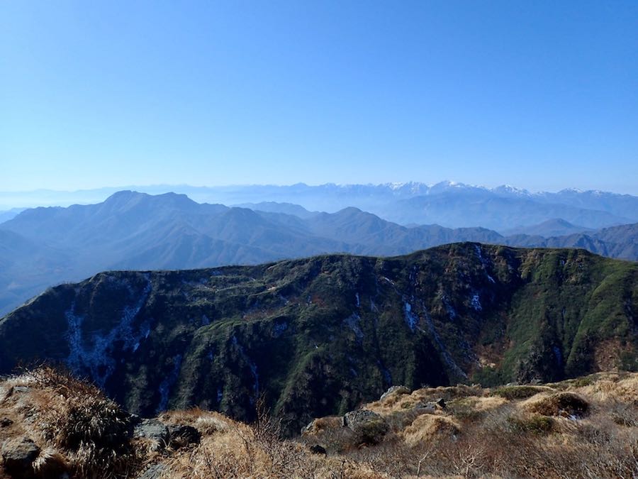 やがて頂上に着きました。目に飛び込んできたのは雪のついた後立山連峰と戸隠の山々。