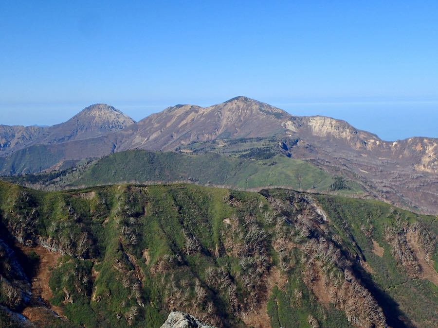 北峰に行くと焼山と火打山が見えました。火打が次の目標です。