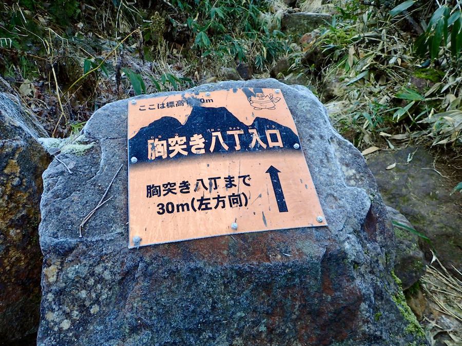 やがて谷から離れ斜面を登っていきます。「胸突き八丁」の看板があって、どんなになるだろうかと警戒したのですが、それほどきつくもなかった。どちらかというとこの辺りは日陰で、石の表面が凍っていて滑りやすかったのが嫌でした。